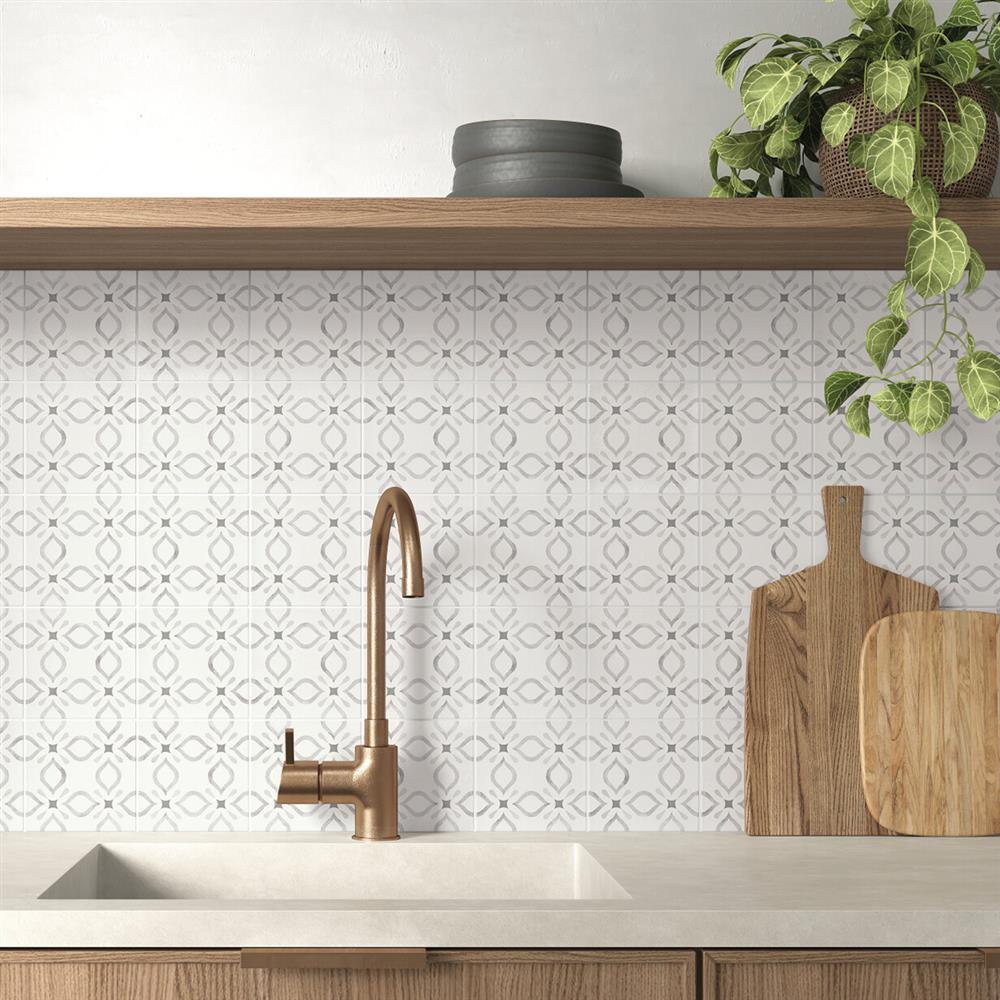 Looking for something a little more vintage in your kitchen tile design? Why not add character to your space with pattern tiles, many of which combine greys and whites for a softer overall effect?