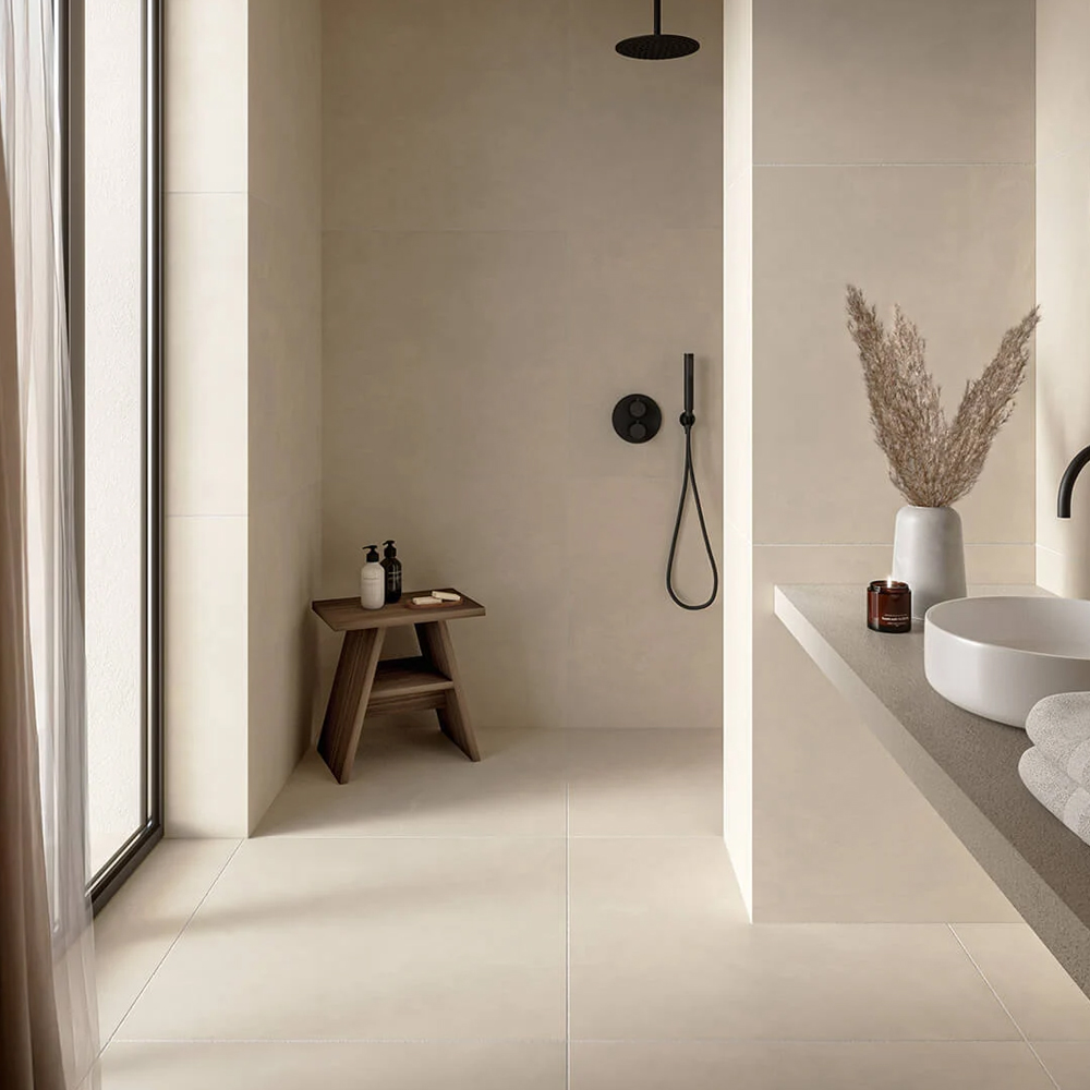 Larger tiles can undoubtedly make smaller spaces appear bigger. When using smaller tiles, the grout lines create a busy and cluttered grid pattern, whereas with large format tiles, these visual interruptions are fewer and further between, creating a more seamless surface. This tricks the eye into perceiving more space.