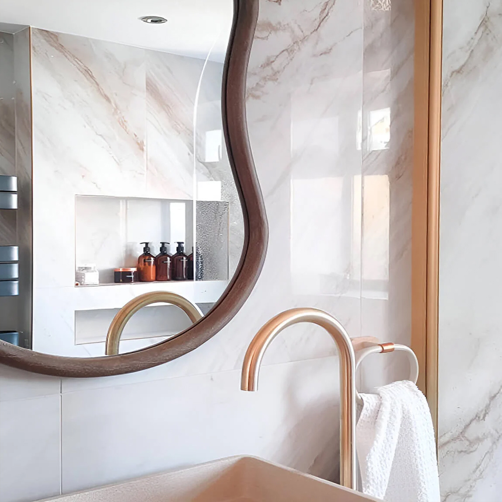 The more light a surface reflects, the larger a space will appear. Glossy tiles and polished surfaces create an almost mirror-like surface that reflects both artificial and natural light, which can create a sense of depth and openness. This is helpful in small bathrooms and kitchens, where waterproof tiles with high-shine finishes serve a practical and aesthetic benefit.
