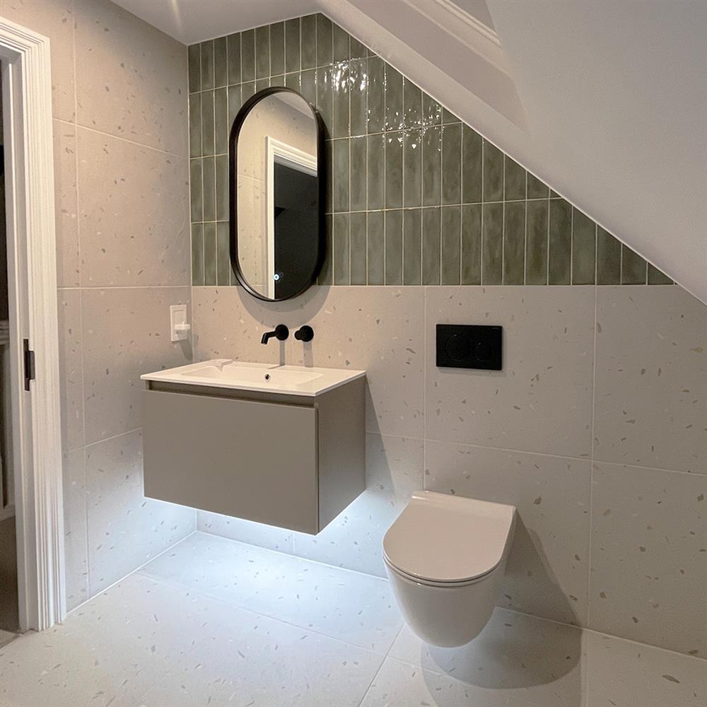 With loft spaces typically having smaller square footage with lower ceilings, lighter neutral colours will ensure your bathroom remains bright and airy. Shades such as soft whites, beige, and pale grey porcelain tiles can help to open up the room, helping to maximise the sense of space.