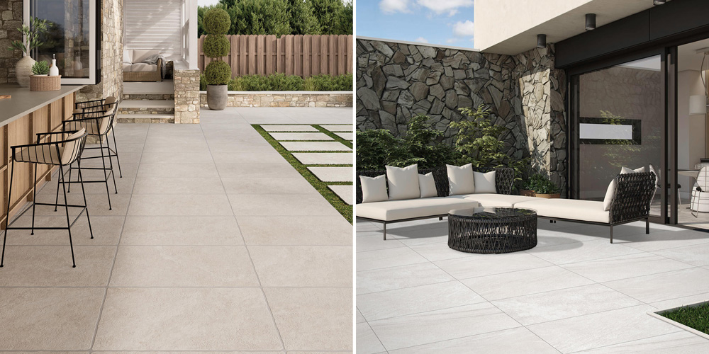 Left: Concrete-effect Porcelain Paving, Right: Lithos Beige Porcelain